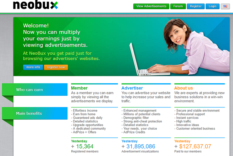Neobux is another PTC site, that is available in the PTC industry for a long long time. It was started in the year 2007 and it is another site which is paying its members regularly. Though Neobux has also some features to make money with tasks like Clixsense, they are more focussed on advertisements.